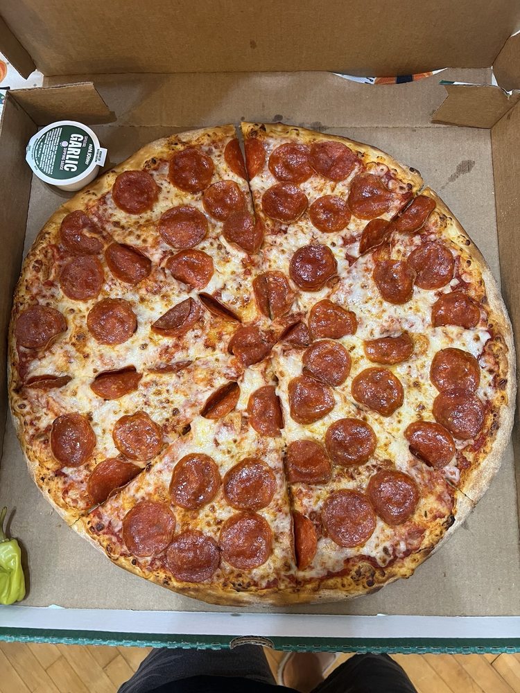 Over half a pound of cheese and extra pepperoni on an extra-large pizza with eight foldable slices of our fresh, never frozen original dough. Served with our Special Garlic Sauce and a pepperoncini.